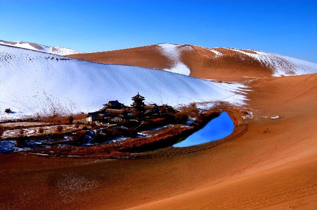 1. 欣赏或拍摄月牙泉有两个最好的角度:一是爬上沙山顶,俯瞰月牙泉;二是近距离的平视月牙泉。