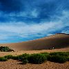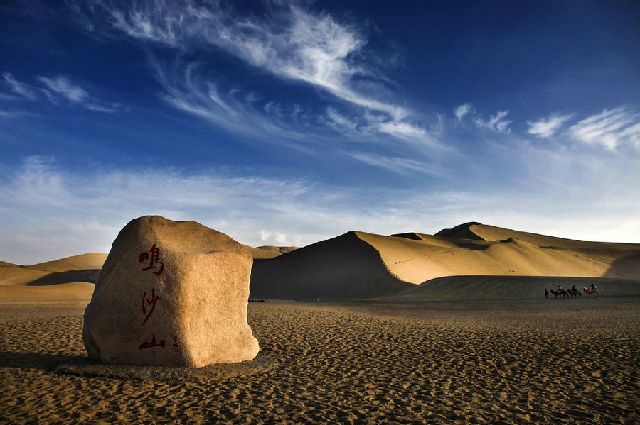 鸣沙山和月牙泉是大漠戈壁中一对孪生姐妹,“山以灵而故鸣,水以神而益秀”。鸣沙山在晴天或有人从山上滑下时会发出声响,所以叫鸣沙山,这里还有一个奇特的现象,因为地势的关系刮风时沙子不往山下走,而是从山下往山上流动,所以月牙泉永远不会被沙子埋没,被称为沙漠奇观。
