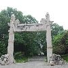 中国历代帝王对陵地的选择非常慎重,特别注重选择“吉壤”之地,即风水宝地。每次外出选址,除派遣朝廷一、二品官员外,还要吸纳通晓地理、会看风水的方士参加。选好陵地后,皇帝还必须亲自审视现场,满意了才被最后确定下来。朱元璋登基后不久,就很关心自己死后的“天堂”,便开始筹划营建陵墓。据说,他曾把刘伯温、徐达、常遇春、汤和等大臣召来,商议选址。五人约定各自先把所选最佳墓址写在纸上,然后同时公开。结果,英雄所见略同,都写着“独龙阜玩珠峰”。所以,朱元津陵墓的墓址就这样定了下来。独龙阜是一座位于紫金山主峰之下的小山丘,高150米,直径约400米,像是一座巨大的天然坟冢。中国的封建皇帝常把自身比作真龙天子,在独龙阜建陵,很符合封建迷信的要求。