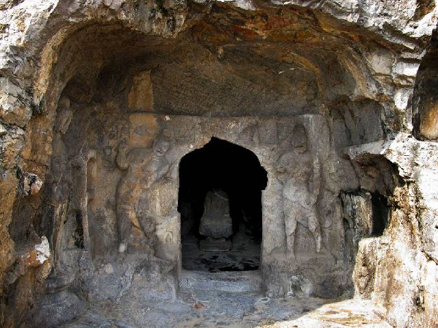 龙门石窟始开凿于北魏孝文帝迁都洛阳(公元493年)前后,后来,历经东西魏、北齐、北周,到隋唐至宋等朝代又连续大规模营造达400余年之久。密布于伊水东西两山的峭壁上,南北长达1公里,共有97000余尊佛像,最大的佛像高达17.14米,最小的仅有2厘米。