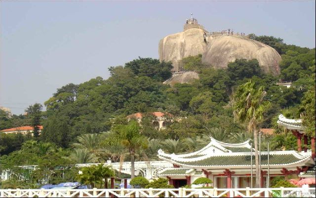 日光岩俗称"岩仔山",别名"晃岩",相传1641年,郑成功来到晃岩,看到这里的景色胜过日本的日光山,便把"晃"字拆开,称之为"日光岩"。日光岩是由两块巨石一竖一横相倚而立,成为龙头山的顶峰。 “闽海雄风”附近,还有清代著名书法家何绍基题刻“脚力尽时山更好”七个大字,笔法俊逸潇洒,自成一格,意在鼓励游人奋力攀登,更上一层楼,风光在顶峰。