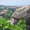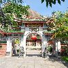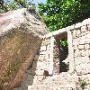 从寨门拾级而上,有两块巨岩相互倾斜而成“人”字形洞穴,称“古避暑洞”,洞顶上方有清代台湾诗人施士洁的隶书“古避暑洞”石刻。夏天,洞内清风徐来,凉风袭人,委实为游客逗留片刻的好地方。