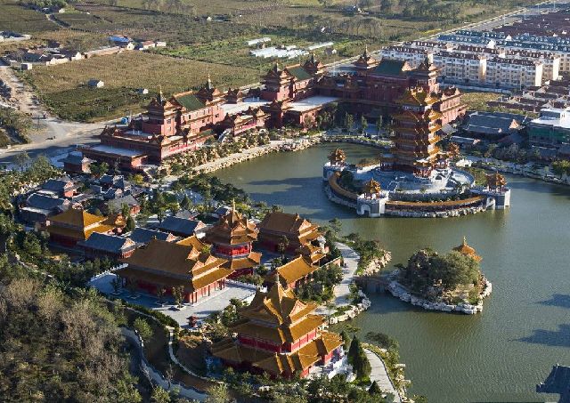 方壶胜境,则取意于清代圆明园中的方壶胜景,再现了圆明园方壶胜境的胜景。在继承前人精华的基础上,景区对各建筑方式改良创新。聘请国内外多名建筑学专家和各地2000多名能工巧匠,大到整体协调、三岛位置,小到山石布置、树木栽种,一一论证模拟。整个景区古典建筑上百座,但建筑形式却千变万化,其檐角、屋面没有一个相同,蓬莱仙岛、瀛洲仙境两组建筑在中国是独一无二的。