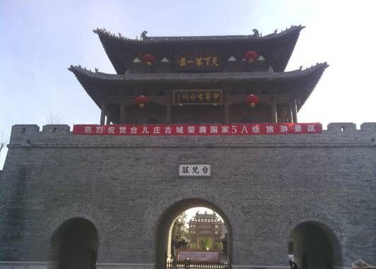 台儿庄古城又称为运河古城,坐落于山东省枣庄市辖区台儿庄区,地处山东省的最南端,处于京杭大运河的中心点。据《清·峄县志》记载:“台儿庄跨漕渠,当南北孔道,商旅所萃,居民饶给,村镇之大,甲于一邑,号为天下第一庄”,“入夜,一河渔火,歌声十里,夜不罢市”。漕运的兴起带来了南北、中西文化的交融,孕育了台儿庄古城多元建筑风格、宗教文化和民俗风情。既是民族精神的象征、历史的丰碑,也是运河文化的承载体,至今仍保留有不少的遗存,被世界旅游组织誉为“活着的运河”、“京杭运河仅存的遗产村庄”。2008年开始重建台儿庄古城,圆了几代台儿庄人民的梦想,古河道,古码头,一座可以舟楫摇曳、遍游全城的东方水城,中国第一座二战纪念城市,2010年重建后的台儿庄古城,将成为世界上继华沙、庞贝、丽江之后,第四座重建的古城,世界第三座二战城市,全国唯一海峡两岸交流基地。江北水乡·运河古城,目前已经成为煤城枣庄的新城市名片。2012年12月被评为5A级旅游景区。