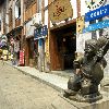 在古镇磁器口最有特色的一景是茶馆。昔日在这千年古镇,随处可见茶馆。当年的水手、袍哥大爷、闲杂人等都喜爱出入此间,茶馆成了龙蛇混杂之地。直到如今,茶馆仍是磁器口一景,百来米长的老街便有13家茶馆,家家茶客满座,古风犹存。