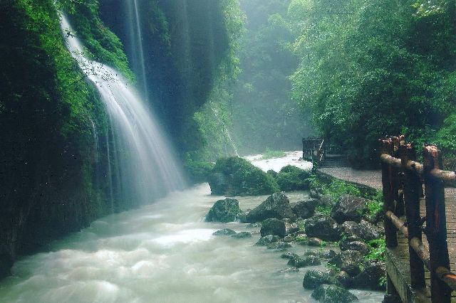 要说黑山谷的精髓便是这秀丽如画的美景了。水则是黑山谷的灵魂,鲤鱼河蜿蜒峡谷而行,各具情致的瀑布峰峦幽壑。走进植物王国黑山谷,险绝峭拔的山峰、郁郁葱茏的林海,溅玉飞珠的瀑布、碧波跌荡的溪河、蝉鸣鸟唱的幽谷、灵瑞飘逸的云海,将让你充分体验原始混沌的梦幻仙景。