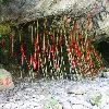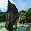黑山谷还有一绝就是黑叶猴和“猴积”。在黑山谷两岸崖壁上,有时可望见一群群黑色的猴子在蹦跳嬉戏,它们一见游人,便倏尔钻进密林深处,显得神秘不已。这种黑猴子名叫“遗体黑叶猴”,又名“乌猿”,是国家一级保护动物,十分珍稀。黑叶猴体长约50厘米,头小尾长,群栖树上,很少下地。黑山谷原始森林分布较密,为黑叶猴提供了良好的生活环境。从70年代发现第一只黑叶猴以来,如今这里已有上百只左右。峡谷中有一道十分险峻的悬崖,叫“猴血岩”,每年,黑叶猴群中的母猴都要在这儿留下经血。天长日久,经血层层淤积,将岩壁染成了赭红色。淤积的母猴经血是一种名贵中药,可治疗诸多妇科疾病,当地人称“猴积”。 由于悬崖太险,采集猴积相当困难。据说,要想采猴积,必须抱有济世救人的诚心,如果想发财,得先准备棺材。千百年来,从猴血岩成功采集猴积的人寥寥无几。