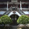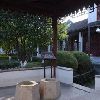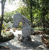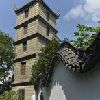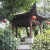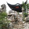 阴阳廊后是五层的望月楼,供主人赏月阅江之用。沿望月楼,靠左行,便是打唱楼。打唱楼形似官帽,单檐式歇山顶风格,供主人喜庆佳节演出之用。园里中间有一座单孔课植桥,桥把园分为两部分,桥东为课园,桥西为植园。课园内有一“倒狮亭”,仿苏州狮子林之亭,改成五角,寓意为“五狮喜庆,五谷丰登”。金黄色的狮子在亭内檐角倒挂,双目张望,前爪舞蹈,一派喜庆之象。主人只敢用五只狮子,不像红顶商人胡雪岩一样,建有百狮楼。因为只有皇宫皇权才能用金黄色的狮子,其他人是禁忌用的。如果你用了,就相当于你想当天子,可天下天子只有一个,那不是谋反的铁证罪状吗?可主人马文卿还是打了一个擦边球,山高皇帝远,谁会注意我课植园里的五只狮子呢?暂且我也用一用,过一下狮王的瘾。