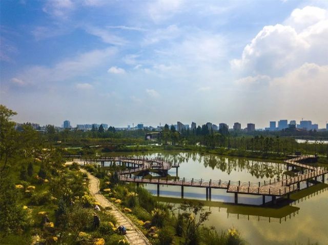 大运河自北而南,经过扬州时,由于扬州地势北高南低,下游蓄水困难,影响航运,所以沿城运河弯道很多,以延缓水势。东南面一个直角形的大弯子叫大水湾,尔后又有宝塔湾、新河湾与三湾子等,那三湾子更是就地兜了个大圈子,颇具鬼斧神工之趣。老百姓习惯于把宝塔湾以南的几个水湾统称为“三湾”, 三湾城市湿地公园就是在这片风水宝地上建立起来的,公园占地1520亩,其中570亩为运河水域。北与文峰塔相邻,南与高旻寺塔相望,将自然生态和人文景观相结合,集生态保护、风景观赏、休闲健身、文化娱乐、旅游度假、科普教育等于一体。三湾公园成为了和瘦西湖风景区遥相呼应的城市南部大景区,是古运河游览线的一大枢纽。三湾,这段古老的运河流域,成为了一个崭新的生态旅游区。
