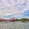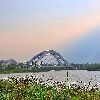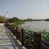 三湾湿地公园将一大段运河圈在一个公园里,又在这公园里建上两座跨运河大桥,这应该是世界运河史上的首创。两座大桥取名“凌波桥”与“剪影桥”,皆造型优美、独具匠心之作。另外有“琴瑟桥”等造型各异的中小型桥以及湖面九曲回廊式的赏景桥等遍布水面。单是这许多桥就足够游人流连观赏半日了。公园大门外,南北还有多座跨运河公路大桥。北门口是三湾大桥,南门口是华扬大桥。还有往北抬头可见的通扬大桥,往南不远处的吴州大桥、高旻寺古运河大桥等。扬州城区运河上的公路桥已经超过20座了!园内还可望见两座宝塔:左图是公园北面通扬桥旁文峰寺的文峰塔,右图是公园南边古运河大桥旁高旻寺的天中塔。