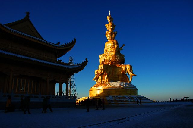 峨眉山位于四川盆地西南部,西距峨眉山市7公里,东距乐山市37公里,是我国的四大佛教名山之一。峨眉山-乐山大佛作为一项文化与自然双重遗产于1996年被联合国教科文组织列入世界遗产名录。最高峰万佛顶海拔3099米,佛教圣地华藏寺所在地金顶3079.3米为峨眉山旅游的最高点。峨眉山以其“雄秀神奇灵”和深厚的佛教文化蜚声中外,明朝时曾经是中原九大名门正派之一峨眉派的地盘。主峰金顶绝壁凌空,有世界最高的金佛四面十方普贤世界最大的金属建筑群,金殿银殿铜殿气势雄伟世界最壮丽的自然观景台,可观云海日出佛光圣灯金殿金佛六大奇观。峨眉山是人类文化的宝库,文化遗产极其深厚,是中国佛教圣地,被誉为“佛国天堂”,是普贤菩萨的道场。杂花经佛授记中说到:“震旦国中,峨眉者,山之领袖”。唐代大诗人李白则有“蜀国多仙山,峨眉邈难匹”的千古绝唱。峨眉山包括大峨,二峨三峨四峨四座大山。大峨山为峨眉的主峰。大峨二峨两山相对,远望峨眉山,有陡峭险峻横空出世的雄伟气势。峨眉山以多雾著称,常年云雾缭绕。弥漫山间的云雾,变化万千,把峨眉山装点得婀娜多姿。峨眉山山势雄伟,气象万千,素有“一山有四季,十里不同天”之妙喻。景区由高中低三大主题游览区组成。全山共有寺庙28座,景点分为传统十景和新辟十景。传统十景:“金顶祥光”“象池月夜”“九老仙府”“洪椿晓雨”“白水秋风”“双桥清音”“大坪霁雪”“灵岩叠翠”“罗峰晴云”“圣积晚钟”。峨眉新十景为:金顶金佛万佛朝宗小平情缘清音平湖幽谷灵猴第一山亭摩崖石刻秀甲瀑布迎宾滩名山起点。在高景区登临金顶极目远望,视野宽阔无比,景色十分壮丽。观日出云海佛光,令人心旷神怡西眺皑皑雪峰贡嘎山瓦屋山,山连天际南望万佛顶,云涛滚滚北瞰百里平川,如铺锦绣,大渡河青衣江尽收眼底。中山区的清音平湖则是峨眉山自然景观的代表。低山区的第一山亭和美食廊集中展示了峨眉山博大精深的人文文化和时尚休闲潮流。另外,灵猴是峨眉山的一大特色。憨态可掬又极通人性,见人不惊与人同乐,成为峨眉山的一道活景观。
