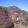 游玩老君山,普通游人多以黎明高山丹霞片区为主。格拉丹高山草原片区和金丝厂片区因为路途较远,交通不变,是户外玩家的最爱,徒步穿越或者露营期间,都是不错的体验,只是要注意安全。黎明高山丹霞片区主要分布在黎明僳僳族乡境内,包括黎明、黎光、美乐、堆美4个村,总面积达250平方公里,是国内面积最大、发育最完整的丹霞地貌。区域内最著名并广为人知的是千龟山。由于红砂岩表面发生干裂,在风化和侵蚀作用下就形成一片有缝隙的凸起,仿佛山坡上一群乌龟在慢慢的爬山,堪称一绝。出于对千龟山地质的保护,攀登千龟山一定要赤足。沿着山间小路前行,除了千龟山,睡佛、五指山、情人柱、自然佛、炼丹炉等景观也都惟妙惟肖,令人称奇。