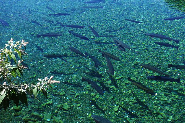 水是玉水寨一道奇特的风景线。走进景区大门,一股清澈的山泉,在两株古老的五角枫树下,从一个隐秘的山洞中汩汩而出,化作层层叠叠、大大小小近十个白珠飞溅的瀑布。传说神泉的泉眼处是自然神出没的地方,每年自然神出来巡视丽江坝子,总是戏水而出,把水叠成几叠,于是造就了这错落有致的“神龙三叠水”瀑布群。溪水汇入玉水潭,潭中养殖有金鳟鱼和虹鳟鱼,游人汇聚潭边,即可欣赏鱼水和谐的场景,也可满足垂钓之乐并大饱口福。