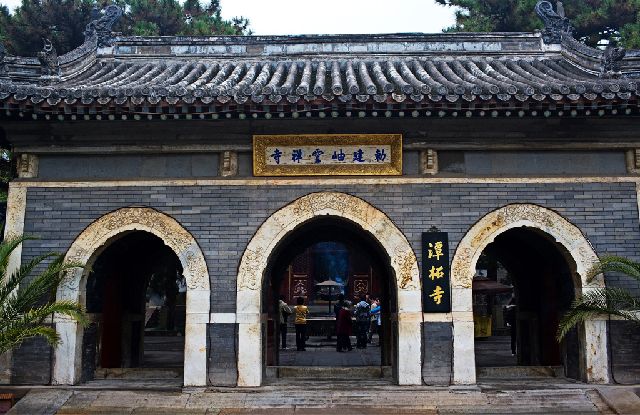 “潭柘”二字之由来:庙后有龙潭,庙前有柘树。