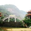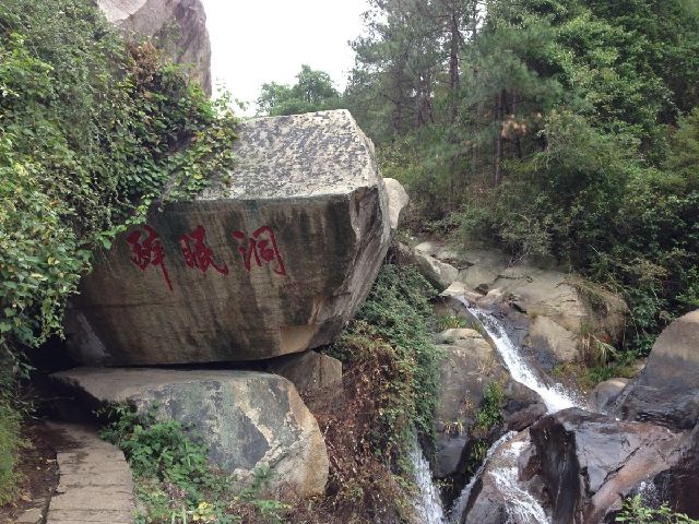 水帘洞前的这座道观叫朱陵宫,它始建于宋代,屡废屡修,现存建筑为2000年重建。它由牌坊、灵官殿、吕祖殿、朱陵殿、三清殿、慈航殿、财神殿等部分组成,占地面积13000多平方米,建筑面积3800平方米。
