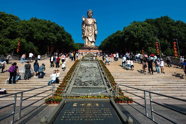 灵山胜境的标志性建筑是灵山大佛,大佛总高88米,比四川的乐山大佛还要高17米,是目前世界上最高大的露天青铜立佛像。正是因为灵山大佛的建造,从而完成了神州大地五方五佛的完美格局。园区内的华夏第一壁、天下第一掌、江南第一钟、神州第一鼎也是各具特色。还有那大型动态音乐景观“九龙灌浴”,再现了佛祖释迦牟尼诞生时壮观绚丽、震撼人心的场景。让我们走进灵山,感受这气象恢宏、瑰丽奇幻的佛教文化之旅,去进行一次知识的熏陶和心灵的净化吧。
