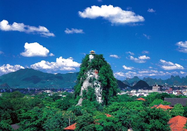城中有桂林众山之王独秀峰,平地拔起,众山环绕,孤峰独秀,为我独尊,有天然的王者气势。在独秀峰读书岩,还可找到800年前南宋人王正功留下的 “桂林山水甲天下” 的摩崖石刻真迹,“桂林山水甲天下”这一千古名句就是从这里开始的。如今不仅可领略到昔日王城的威严肃穆,而且还可亲手抚摸600年城墙的沧桑历史,清朝唯一的汉人格格孔四贞(即“还珠格格”)的家,就在这昔日王府的深宫禁地之内。