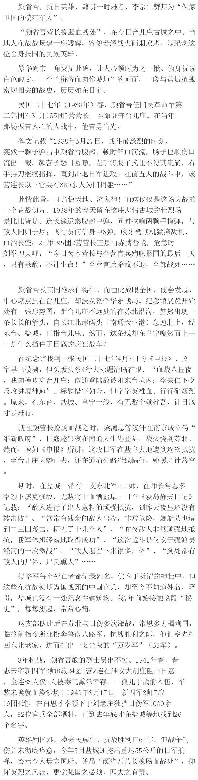 颜省吾营长挽肠血战处