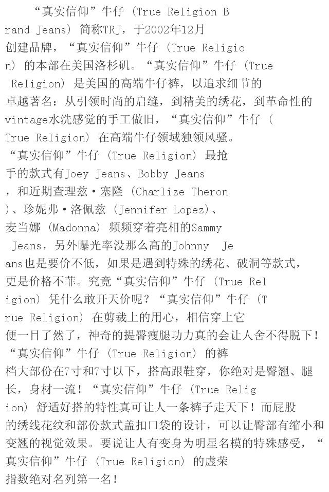 真实信仰 True Religion Brand Jeans