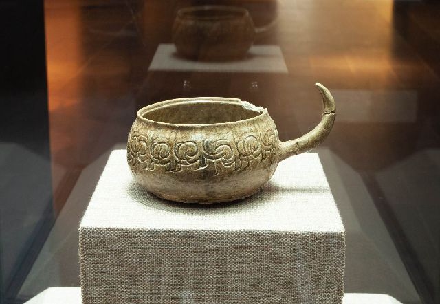 原始青瓷带把罐