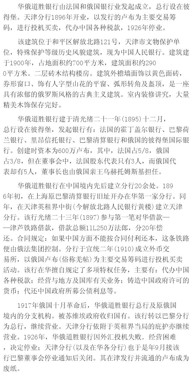 天津原华俄道胜银行